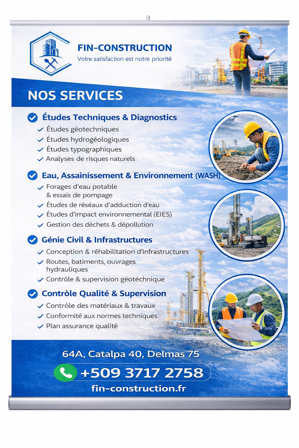 Bien que notre siège soit situé à Delmas 75, FIN-CONSTRUCTION intervient sur l’ensemble du territoire haïtien.